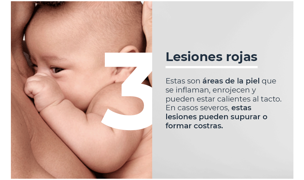 - Lesiones rojas: Estas son áreas de la piel que se inflaman, enrojecen y pueden estar calientes al tacto. En casos severos, estas lesiones pueden supurar o formar costras.